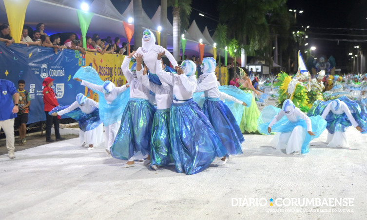 Na comissão de frente, as águas foram o destaque, pois a escola bem lembrou que foi nesse elemento natural que a vida surgiu e que, em nossa região pantaneira, o ciclo delas é vital.